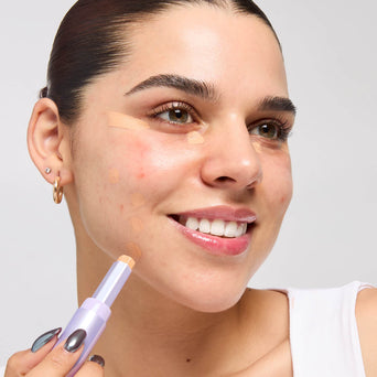 Swipe concealer onto larger areas of your face. Use sweeping motions to blend evenly, using the points for more precise blending. Buff for maximum coverage & a flawless look.